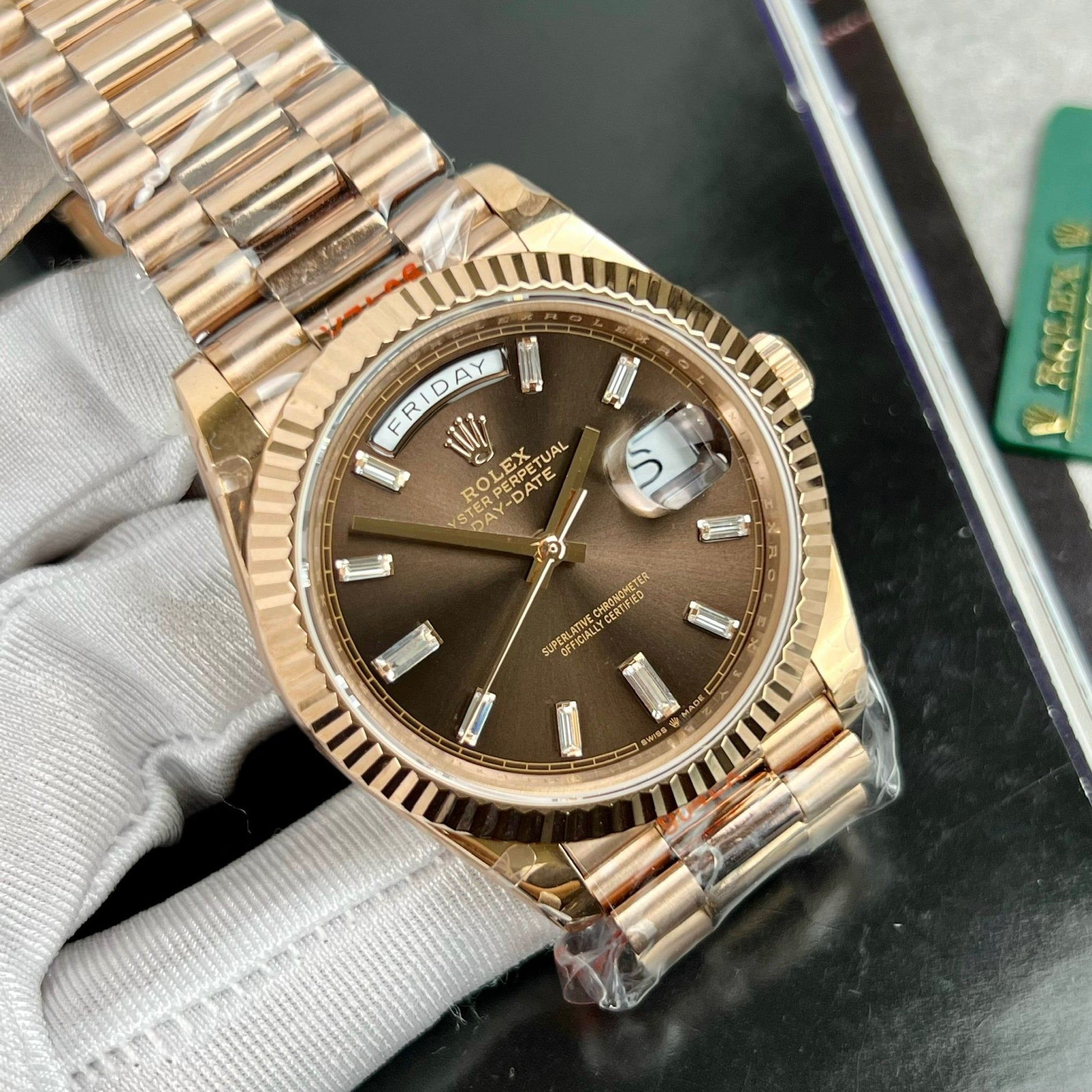 롤렉스 Day-Date 40mm 228235 chocolate dial 18k 로즈 골드 filled 167 gram