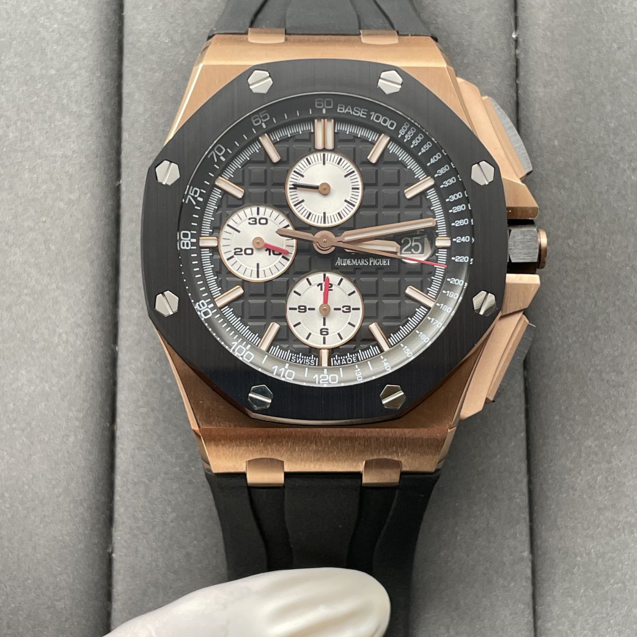 오데마 피게 로열 오크 Offshore 26401RO.OO.A002CA.01 1:1 Best 에디션 APF 팩토리 블랙 다이얼 모델에 대한 상세 사양과 마감 품질을 충실히 재현한 제품입니다. 섬세한 디테일과 균형 잡힌 디자인으로 손목 위에서 뛰어난 존재감을 보여줍니다.